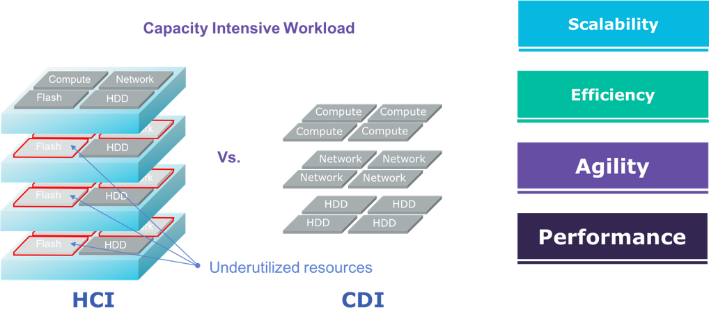 如何能够更好地实现资源融合,以实现存储和网络带宽可以独立扩容。最终目标是构建灵活且可有机组合的基础架构,能实现混合并且弹性部署。