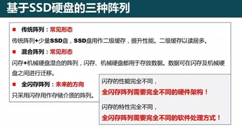 全闪存阵列也是一种笼统的说法,专业上也有很大区分,例如Gartner就将其区分为AFA (All Flash Array,全闪存阵列)和SSA(Solid-State Array,固态阵列)。