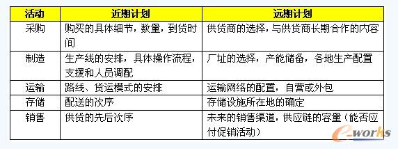 所有企业都具备五项基本活动,采购、制造、运输、存储、销售,其叶可以利用供应链管理的概念之订出相应的近期和远期计划。近期计划是针对某一种情况而制定,是具体操作的内容,远期计划则是设计整个企业的供应链方案。