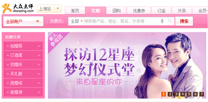 大众点评近日对外宣布,将深耕结婚及酒店旅游两大垂直领域,整合旗下横向产品线对接商户和消费者并为双方提供服务,完成 O2O 闭环。