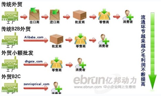 。“小宗外贸B2B(甚至B2C)+中国制造+世界市场”这种新型的外贸出口模式,将是值得提倡的一种提升“中国制造”价值的方式。这个模式我们先做透