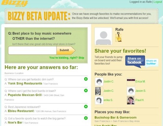 据国外媒体报道,初创公司Bizzy(bizzy.com)正在测试它的本地店铺推荐服务新版本。你可以把Bizzy当作是一个为本地店铺提供服务的Netflix,你