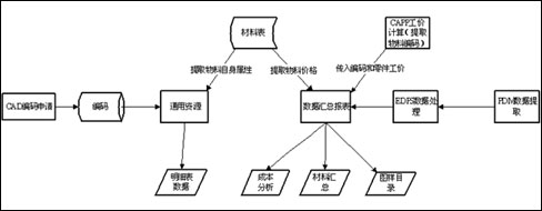 PDM除了管理企业的图文档这一基本职责外,通过提取设计和工艺两套数据以及一个中间材料库的相关信息,通过汇总统计,可以得到产品的材料汇总、