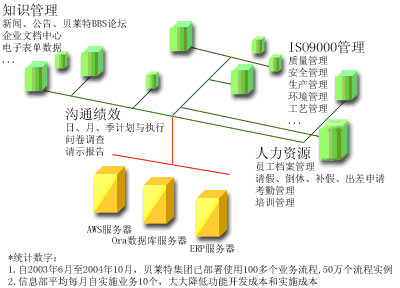 如今,BPM办公自动化系统在贝莱特中得到了充分的应用,功能模块已由原来正式上线的20多个增加到现在的将近100个。