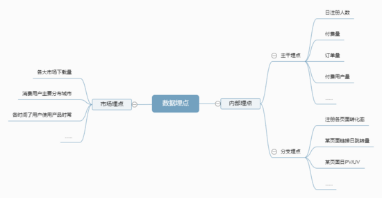 数据埋点可以分为产品内部埋点和市场埋点,内部埋点通常分析用户使用产品的行为及流程,提升用户体验。市场埋点分析该产品在市场上的表现及用户使用场景,如产品在不同市场和地域的下载量,不同地域人群使用时间等等。