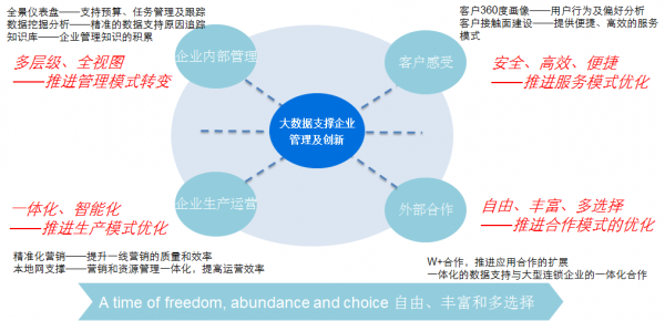 最后为我们的用户说几句吧,如果我是一个世界500强的用户,第一次走进联通的营业厅办业务,联通能不能第一时间给我提供大客户级的服务而不要等我给联通创造了多少收入之后才发现我的价值?如果我使用了联通10年以上的宽带业务,联通能不能辨识出我的价值,给我提供VIP级的一体化服务?联通能不能通过我喜欢的方式、在我方便的时间、通过更加便捷的手段,推荐给我贴心的服务,而不是关注于挖掘我的隐私?以上用户的诉求,背后都是大量的数据作为支撑的。公司经营策略中说了多少年的“以客户为中心”,但是从数据指标体系上看,仍然是“以产品为中心”。数据层面确实应该为我们的用户做点什么了。
