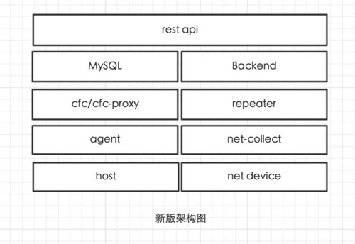 服务端在上个版本中,主要负责agent端配置的维护,监控数据的接收和转存,网络设备数据的采集,端口健康状态监测等功能,当服务端需要进行维护的时候,整个监控服务相当于不可用的。另外也不利于扩展。所以在该版本中对server进行了拆分,分别为cfc、repeater、net-collect,其中cfc主要负责配置维护,repeater负责监控数据接收和转发,net-collect负责采集网络设备数据,任何一个组件都可用做到水平扩展,极大的降低了系统的风险。