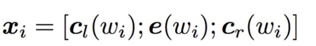 这类CNN的方法,通过设计不同的window size来建模不同尺度的关系,但是很明显,丢失了大部分的上下文关系,Recurrent Convolutional Neural Networks for Text Classification,将每一个词形成向量化表示时,加上上文和下文的信息,每一个词的表示如下: