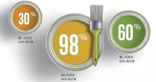 而凭借c值得信任的高度扩拓宽渠道,立邦涂料成功猜测了活动中的制作需要顶峰,提早做出供给链个端口的优化,相继在第一天中交给30%的订单,第二天交给60%的订单,第三天到达悉数订单的98%交给率。