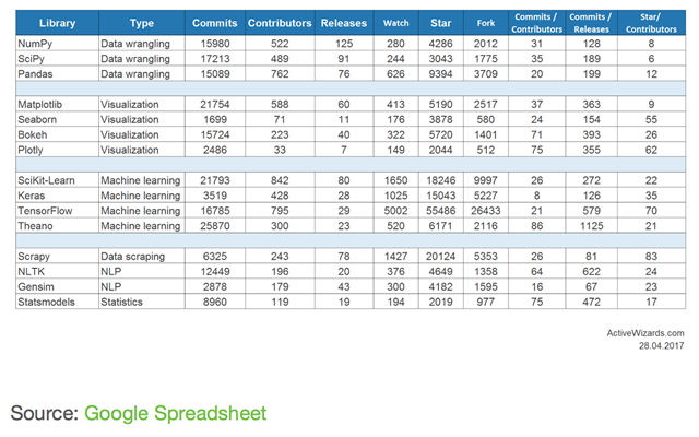 以下是每个库Github活跃程度的详细统计资料: