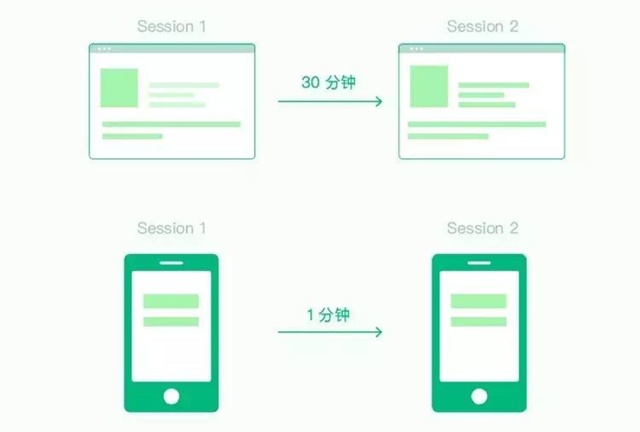 这要看数据分析工具的 Session 切割规则,通常来讲,Web 产品建议切割时间为 30 分钟,APP 产品建议切割时间为 1 分钟。比较符合用户的使用习惯,当然规则是活的人也是活的~可以根据产品的业务形态变更。所以王小明两次浏览页面的时间超过了 Web 端的 30 分钟,被记录为两个 Session。