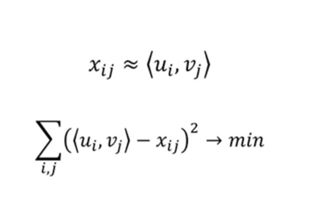 于是我们能够通过 u 和 v 的点积来估计 x(第 i 个用户对第 j 部电影的评分)。我们用已知的评分建立这些向量并以此预测未知的评分。