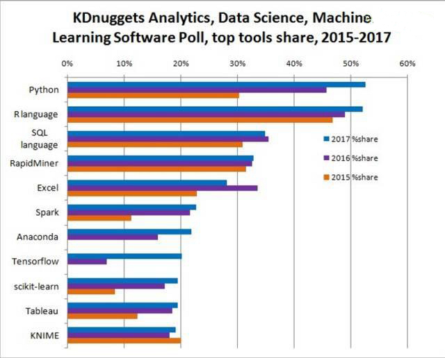 分析、数据科学、机器学习领域使用率居前的工具大数据
