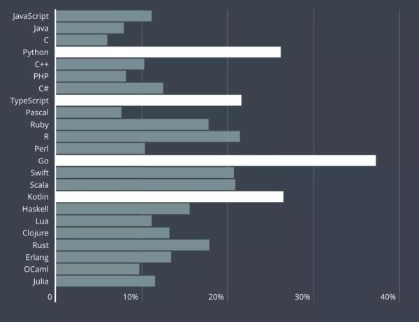 报告调查了开发者最想学习的开发语言,结果显示,Go语言、Kotlin语言和Python语言位列前三。