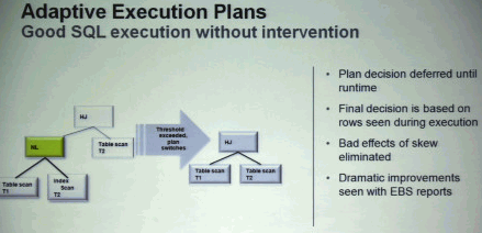 7.Adaptive执行计划:拥有学习功能的执行计划,Oracle会把实际运行过程中读取到返回结果作为进一步执行计划判断的输入,因此统计信息不准确或查询真正结果与计算结果不准时,可以得到更好的执行计划。