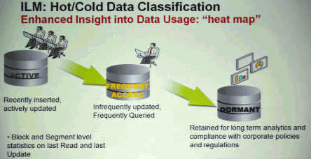 10.数据优化:新增了ILM(数据生命周期管理)功能,添加了“数据库热图”(Database heat map),在视图中直接看到数据的利用率,找到哪些数据是最"热"的数据。可以自动实现数据的在线压缩和数据分级,其中数据分级可以在线将定义时间内的数据文件转移到归档存储,也可以将数据表定时转移至归档文件。也可以实现在线的数据压缩。