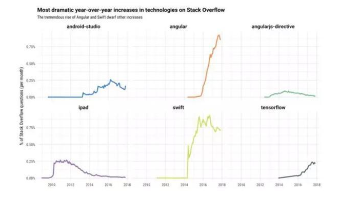 很明显的看出Swift 和 Angular式增长最快的语言,背后原因是因为Swift背后亲爹Apple大力加持,和苹果独有的生态体系,作为Objective C的替