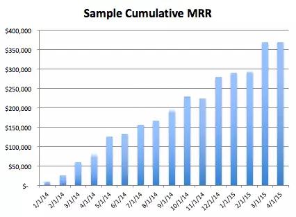 列举某公司通过月度订阅获得营收为例,为了更细化一些,假设这是一家B2B SaaS公司。对这样的公司而言,月活跃用户(MAU)增长和月常规收入(MRR)