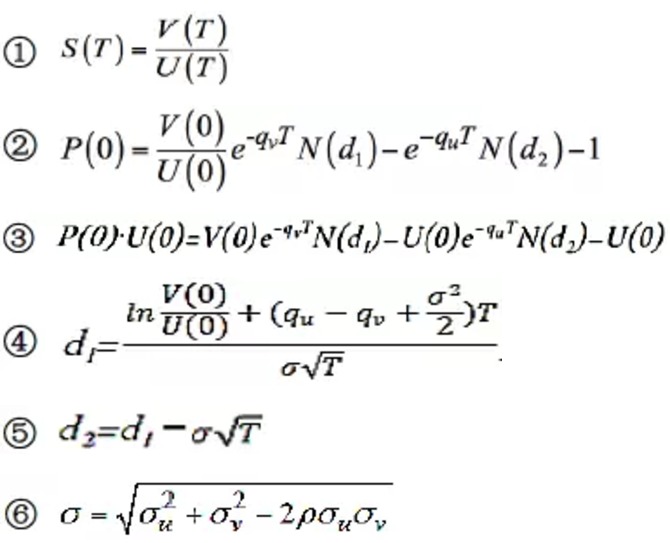 因此ICO代币定价需要新的方法论。一种可行的思路是将代币的经济价值看作以项目未来价值为标的资产的看涨期权,采用期权定价法进行定价。假定项目价值是以比特币为形式,在未来T期,以比特币计价的项目价值为S(T),届时比特币的法币价值为U(T),那么以法币计价的项目价值为V(T)=S(T)U(T),即①。根据代币收益的或有特征,T期代币价值P(T)=max(S(T)–Z,0),Z为以比特币计价的临界值,当项目价值低于临界值,意味着项目失败,代币价值为零,否则项目价值为S(T)–Z。进一步,将P(T)写成max(S(T),Z)–Z。简洁起见,假定Z为1,此时代币价值可表示为P(T)=max(S(T),1)–1,将①代入。利用期权定价方法,可以求解出以比特币计价的代币现值P(0):②。