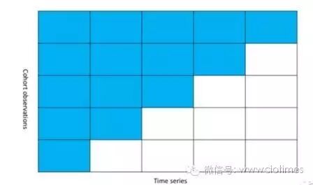 随着数据运算能力的提高,队列分析的方式逐渐展露头脚。英文名称为cohort analysis,说实话我不知道怎么表述这个概念,我的理解就是**按一定的规则,在时间颗粒度上将观察对象切片,组成一个观察样本,然后观察这个样本的某些指标随着时间的演进而产生的变化**。目前使用得最多的场景就是留存分析。