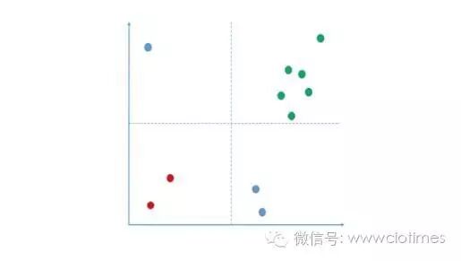 **关键点在于,分类后的事物,需要在核心指标上能拉开距离!**也就是说分类后的结果,必须是显著的。如图,横轴和纵轴往往是你运营当中关注的核心指标(当然不限于二维),而分类后的对象,你能看到他们的分布不是随机的,而是有显著的集群的倾向。