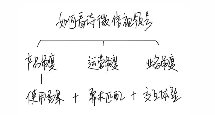 比如“如何看待微信视频号”,评估维度可以是:从产品角度看、从运营角度看、从业务角度看。产品角度的关联影响要素是:使用场景、需求匹配、交互体验等等。这个时候,我们可以把从微信视频号的交互展开去聊。