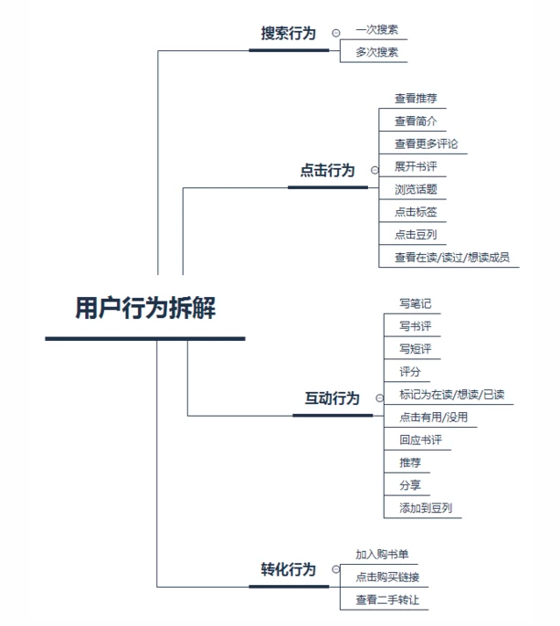 这个时候,你要做就是「拆解有哪些用户行为」且「哪些用户行为会影响豆瓣推荐」,这个时候可以用「结构化思考」来拆解用户行为(如下图):