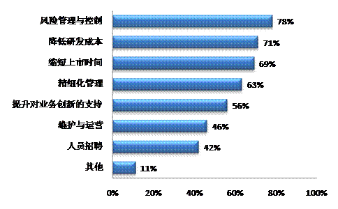 CIO们普遍认为面临五大挑战:信息化的风险管理与控制、降低投入成本、缩短上线时间、IT本身的精细化管理,以及提升对业务创新的支持。