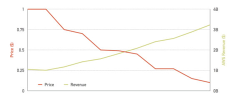 由于资源硬件降价、竞争激烈,AWS价格大幅下降。可价格跳水的同时,AWS的收入却不断增长。这说明AWS的发展越来越好、客户越来越多。将来计算资源越来越便宜,云计算的价格会逐渐降低,使用的人也会越来越多,大家不会再自己买自己的硬件。使用AWS成为未来企业发展的一大趋势。AWS作为一门通用的技术,也非常值得投资学习。