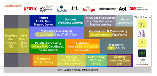 此外也有很多的第三方开源软件,用来更好地管理AWS的资源。所有这些模块的运用都通过AWS接口来实现。AWS有以下几类:
