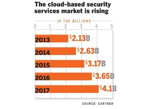 根据Gartner预测,2017年基于云的安全服务市场规模将达到41亿美金,云安全的发展将受益于云计算市场的快速增长。