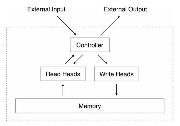 神经图灵机通过将神经网络与外部记忆资源耦合而对该神经网络的能力进行了延展——它们可以通过注意(attention)过程与外部记忆资源交互。参阅机器之心文章《神经图灵机深度讲解:从图灵机基本概念到可微分神经计算机》。