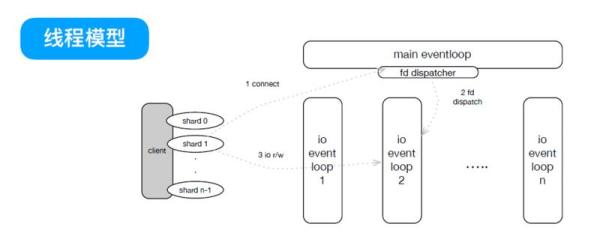 首先,传统架构采用单线程传输,单个线程写 IOPS达6W,读IOPS达8W,难以支持后端NVME硬盘几十万的IOPS以及1-2GB的带宽。为了利用NVME磁盘的性能,需要将单线程传输改为多线程传输,系统定期上报线程CPU以及磁盘负载状态,当满足某线程持续繁忙、而有线程持续空闲情况时,可将选取部分磁盘分片的IO切换至空闲线程,目前5个线程可以完全发挥NVME的能力。