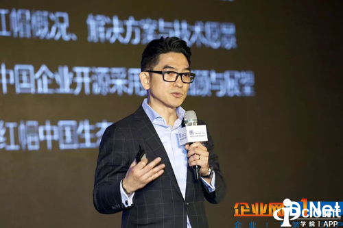 上图为:红帽全球副总裁兼中国区总裁曹衡康