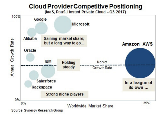 第三季 AWS 在云端基础设施市场的优势有增无减,即便微软、Google、阿里巴巴等竞争对手的成长速度远高于 AWS,仍不会撼动 AWS 在市场上的统治地位。