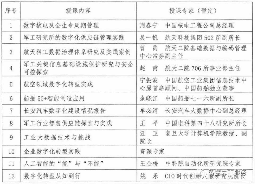 2021年军工行业数字化转型新趋势新场景综合培训及研学活动课程
