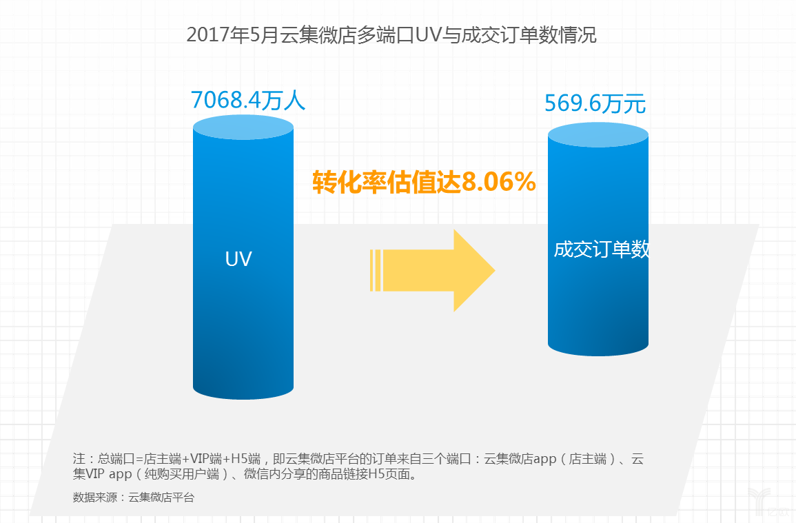 再比如属于手机开店类的云集微店,于日前和易观联合发布了《2017中国社交电商大数据白皮书》,首次公开社交电商行业的核心数据。据悉,2015年6月至2016年5月,云集微店的销售额达5.83亿元,此后一年,销售额增至35.39亿元,增速达506.3%,2017年周年庆期间,销售额则同比增长696%。