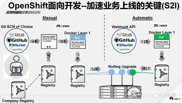 在技术上,目前实现CI/CD最好的方式是,以容器为基础,实现CI/CD。如红帽的Openshift。详细请参考本公众号文章:火力全开 | 持续集成、持续交付 | 5分钟了解一个容器典型应用场景系列