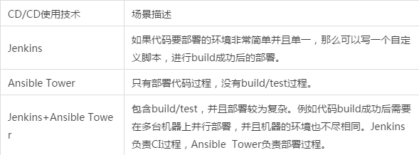 那么有人会问,做CI/CD是否可以只用Jenkins或Ansible呢,请见下表: