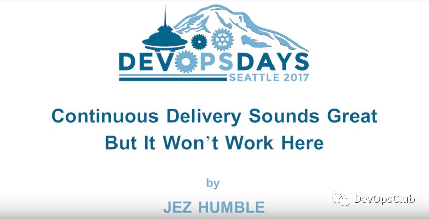 正好去年底我看到了Jez Humble在2017年DevOpsDays美国西雅图站的演讲《Continuous Delivery Sounds Great But It Won’t Work Here》。演讲中提到了一些很棒观点,贯穿的几个案例故事也非常有启发,于是笔者结合自己的一些经验和思考,整理本文分享跟大家。
