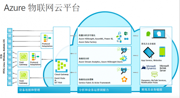 徐明强表示,Azure IoT Hub是全球唯一有接入千万级设备能力的服务,不光支持原生态的HPTTP、AMQP、MQTT等协议,而且还有适配器,可以将客户定制协议做接口,把数据引进来。目前,Azure IOT Hub已经可以在中国使用。