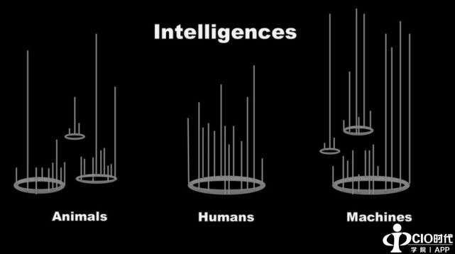 关于人工智能最常见的误解其实来自对自然智能的普遍误解。很多人认为,智能是单一维度的,这种理解其实并不正确。多数技术人员往往会像尼克-博斯特罗姆(Nick Bostrom)那样绘制智能进化图谱——他曾在《超级智能》(Superintelligence)一书中把智能描绘成一种单一维度、呈现线性发展的东西。