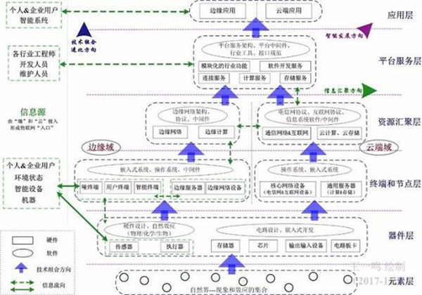 参照物联网技术的自然组成结构,以及信息产业格局和物联网商业视角的分层架构,物联网的技术矩阵可分成六个层次。
