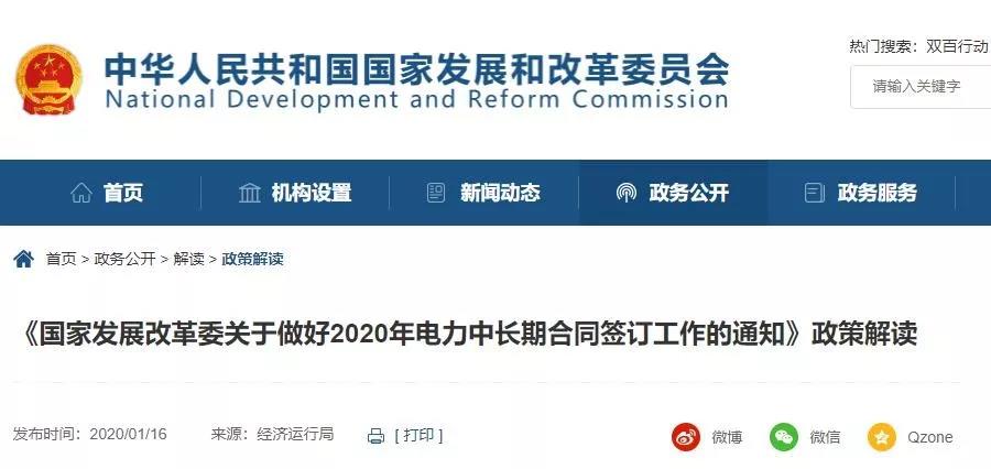 近日,国家发改委对《关于做好2020年电力中长期合同签订工作的通知》进行政策解读,指出《通知》是新一轮电力体制改革以来完善电力批发市场的