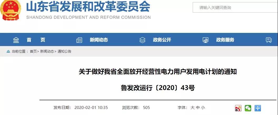 近日,山东省发改委印发《关于做好我省全面放开经营性电力用户发用电计划的通知》。