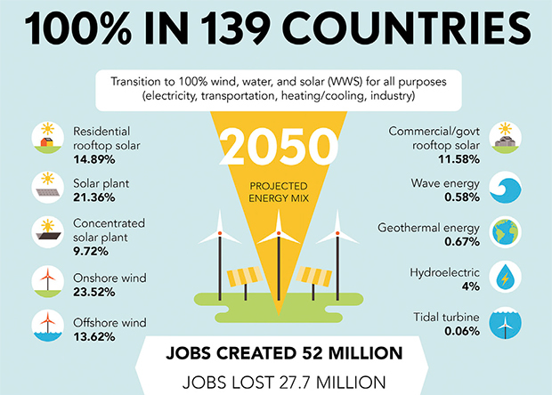 斯坦福大学日前发布一份研究报告称,到2050年,全球139个国家将通过太阳能、风能、水电、地热能等实现100%可再生能源供电。