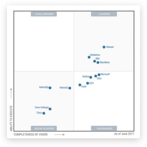 近日,Gartner 发布了2017 EMM 魔力象限(Magic Quadrant for Enterprise Mobility Management Suites),启迪国信再次榜上有名。这是继2016年首次进入魔力象限后,启迪国信第二次进入该榜单。启迪国信是Gartner EMM 魔力象限历史上,唯一的一家中国厂商。