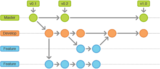 可以对每个新特性创建一个新的feature分支,当该特性开发完毕,将此feature分支合并到develop分支。