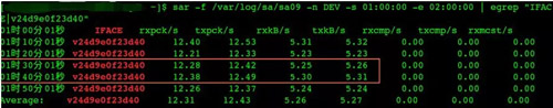 上图是通过sar监控到的9号 v24d9e0f23d40 这个网卡的流量,看起来也是正常,流量没有出现明显的波动。