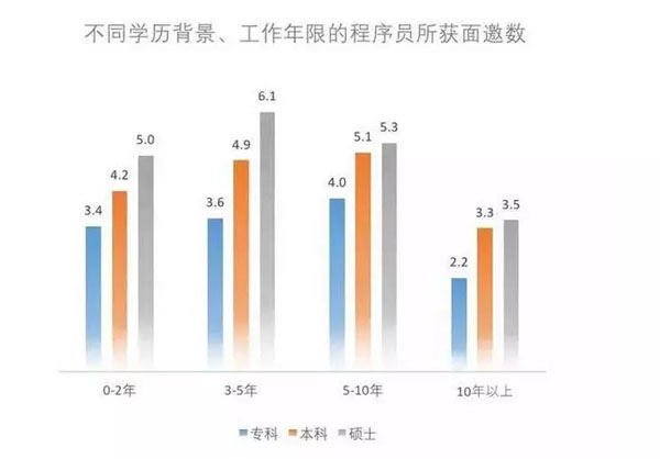 单从面试邀请平均数上来看的话,专科和本科程序员是有区别的。